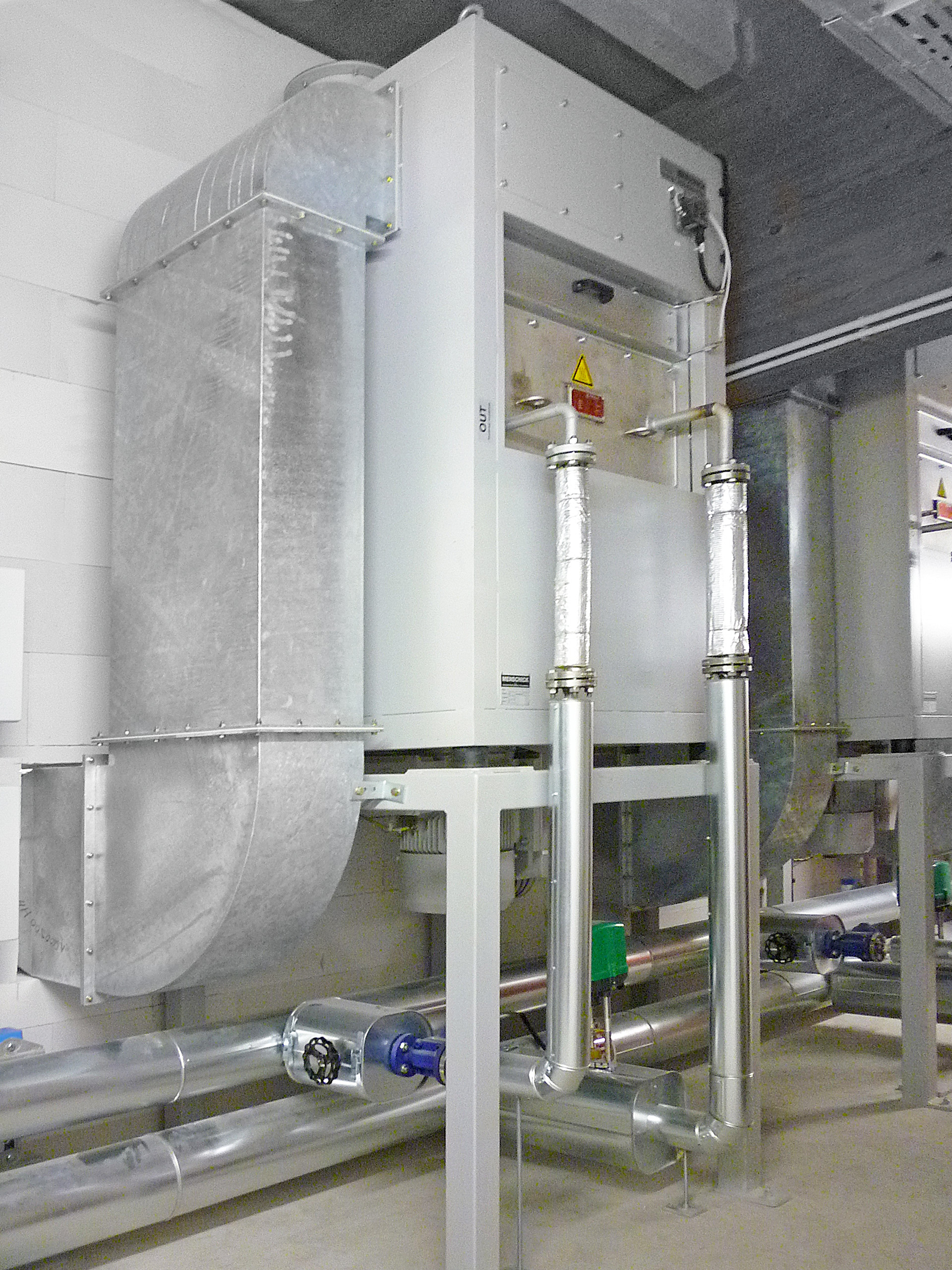 Hot air boxes are particularly advantageous because of their compact and space-saving design. Each technical component or function that is necessary for air supply, air heating and optimal recirculation of equipment such as nozzle dryers is clearly arranged within one device. This avoids confusing and space consuming installations of fans, heating chambers, pipes and ventilation dampers quite often found within printing machines.